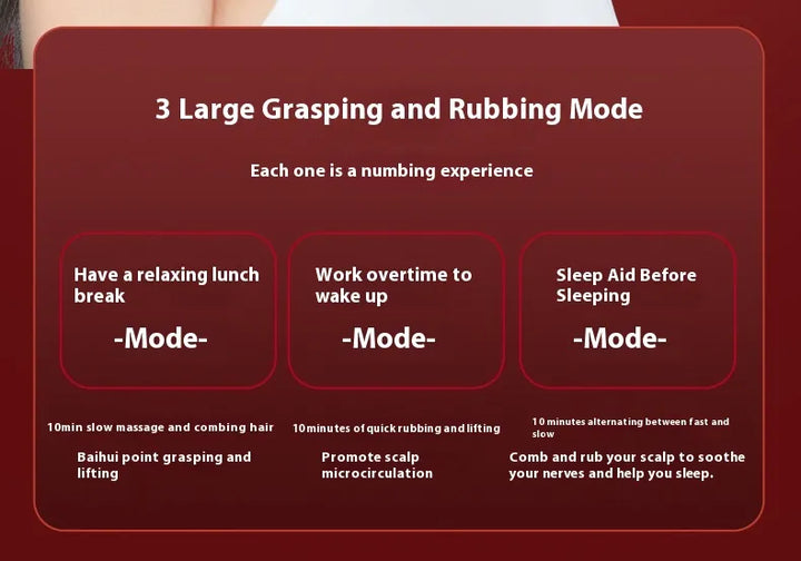 • Head Massager: 360° kneading massage to stimulate scalp meridians, replicating the soothing touch of human hands for deep relaxation and improved sleep.